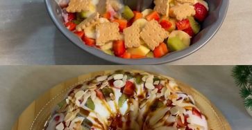 Fruit and Caramel Pudding Dessert🧾 Ingredients:1 banana, sliced1 apple, diced2 kiwis, peeled and sliced8 strawberries, halvedJuice of 1/2 lemon1 liter…