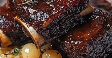 Rustic Red Wine–Braised Beef Short Ribsin Velvety Herb-Infused Gravy🧾 Ingredients1.5 kg beef short ribs2 tbsp olive oil1 large onion, diced2…