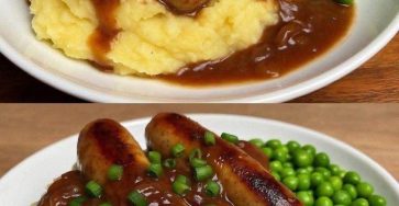 Sausages with Mashed Potatoes & Onion Gravy🧾 Ingredients:For the sausages:6–8 sausages (pork or beef)For the mashed potatoes:4 large potatoes, peeled…