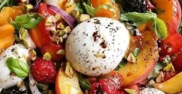 Savor the sweetness of summer with our Peach Burrata Salad, a symphony of juicy berries, fresh peaches, and creamy burrata…