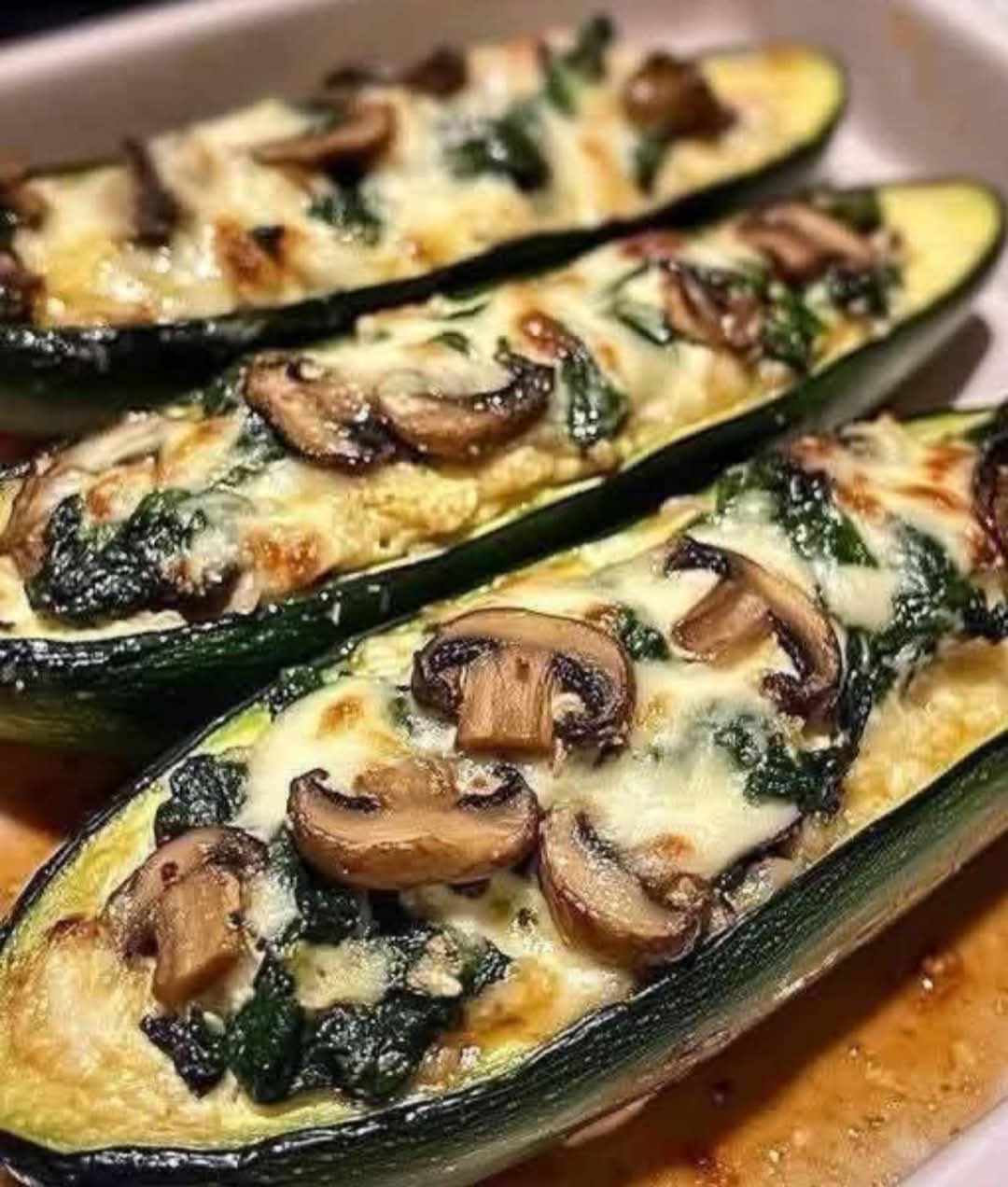 Spinach, Mushroom, and Ricotta Stuffed Zucchini Boats