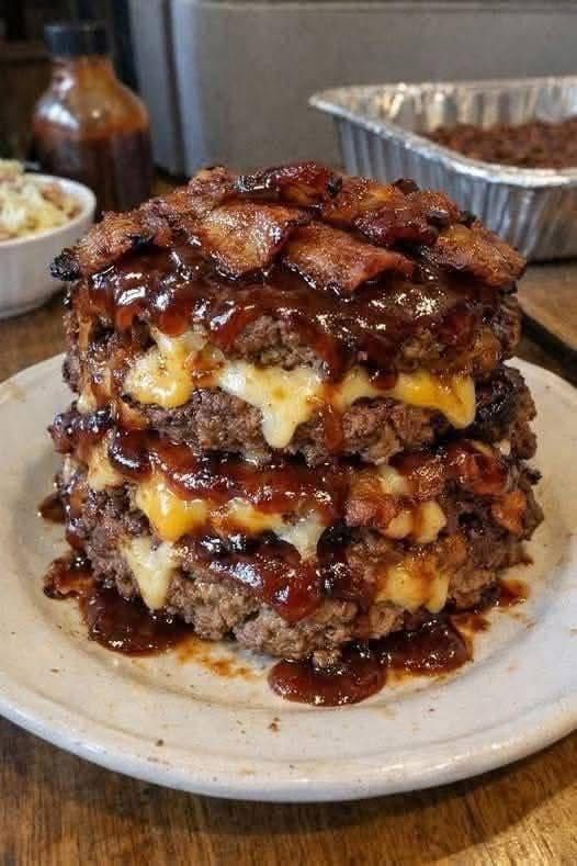 Smoked Bacon Triple-Cheese Cheeseburger Meatloaf Stack