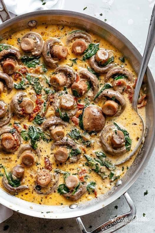 Rich, creamy, and packed with garlic, herbs, and sun-dried tomatoes — this Tuscan-style mushroom dish is perfect as a side or served over pasta, rice, or toast.