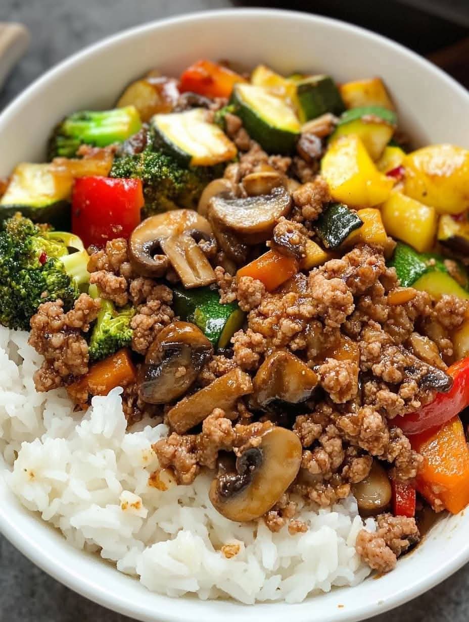 Savory Ground Turkey & Roasted Veggie Rice Bowl 🥦