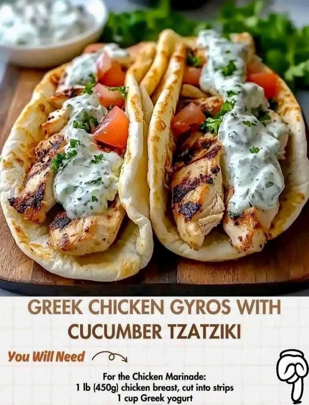 Greek Chicken Gyros with Cucumber Tzatziki 🐔🍞