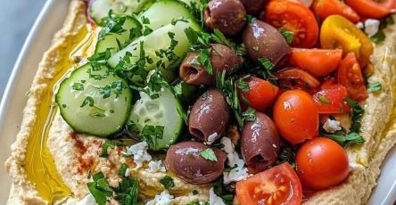 In a bowl, mix together Greek yogurt, grated cucumber, garlic, lemon juice, olive oil, salt, and pepper.
