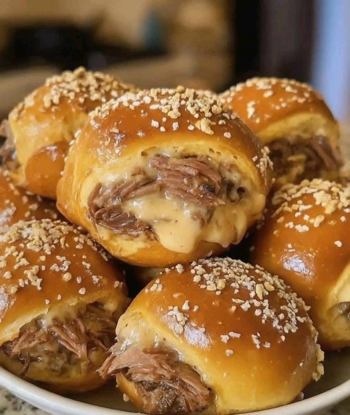 Soft, chewy pretzel dough stuffed with smoky brisket and creamy beer cheese — perfect for game day or parties!