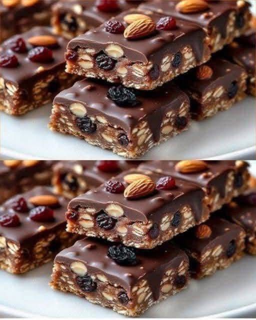 In a large bowl, combine oats, nuts, dried fruit, and ½ cup chocolate chips.