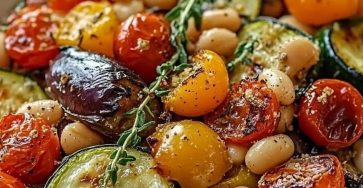 Mediterranean Herb-Roasted Vegetables & Golden Cannellini Beans with Parmesan FinishColorful roasted vegetables, creamy cannellini beans, and a savory Parmesan finish…