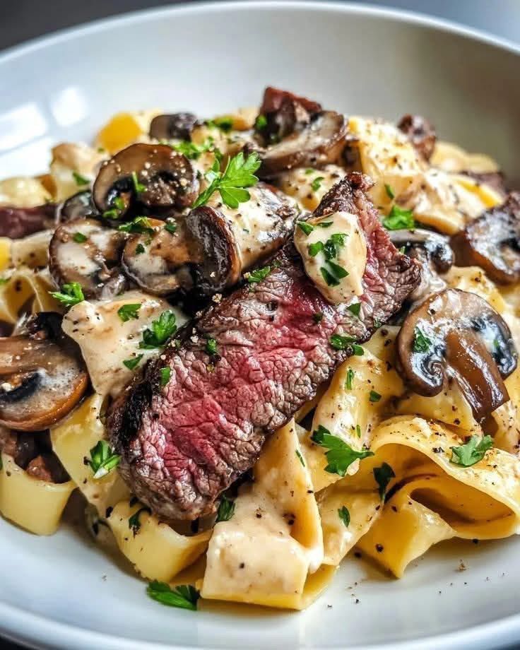 Rich, silky sauce… tender steak… wide ribbons of pasta that hold every drop of flavor. This is comfort food at its finest 😍
