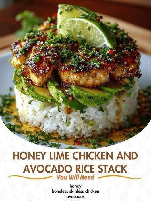 Honey Lime Chicken and Avocado Rice Stack is a vibrant and flavorful dish that combines sweet, tangy chicken with creamy avocado and fluffy rice. The layers create a beautiful presentation while delivering a balanced mix of protein, healthy fats, and fresh citrus flavor. It’s perfect for a light lunch, healthy dinner, or even an impressive meal for guests.