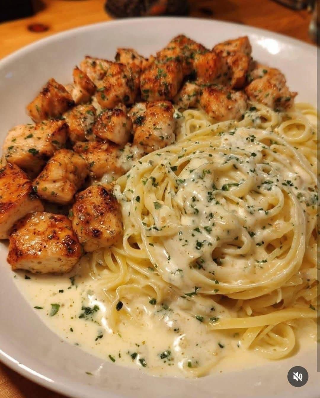 🍝 Creamy Garlic Butter Chicken & Linguine in Alfredo Sauce