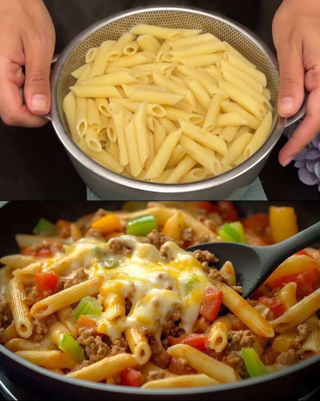 This dish combines savory beef, sweet roasted vegetables, and gooey melted cheese in every bite. It’s cozy, filling, and perfect for family dinners.