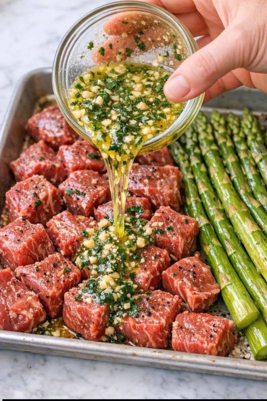 Juicy, tender steak bites baked with crisp asparagus in a buttery garlic sauce. This one-pan meal is low in carbs, packed with flavor, and perfect for quick dinners or meal prep.