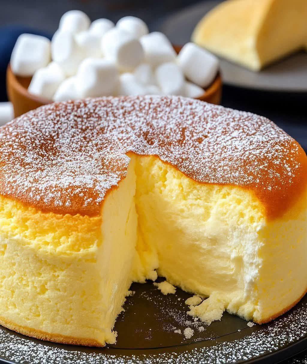 This cake is incredibly light and jiggly, almost like a cross between a cheesecake and a sponge. The whipped egg whites give it that signature soufflé texture—soft, airy, and melt-in-your-mouth.