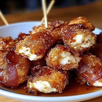🧀🥓 Irresistible Crispy Bacon Mozzarella Poppers with Glaze
