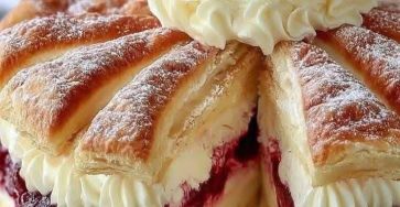 🥐 Puff Pastry Cream and Jam CakeA simple yet elegant dessert made with flaky puff pastry layers, creamy custard filling,…