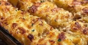 🧀 Cheesy Chicken & Potato BakeThe dish in the image looks like a creamy baked chicken and potato casserole topped…