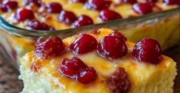 3-Ingredient Cherry Cheesecake Bars recipe 🍒🧁 Ingredients (only 3!)1 can (21 oz / ~600 g) cherry pie filling1 package (8…