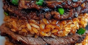 Korean BBQ Beef Rice Stack 🍚 Ingredients: For the Korean BBQ Beef: 1 lb beef sirloin or ribeye, thinly sliced1/4…